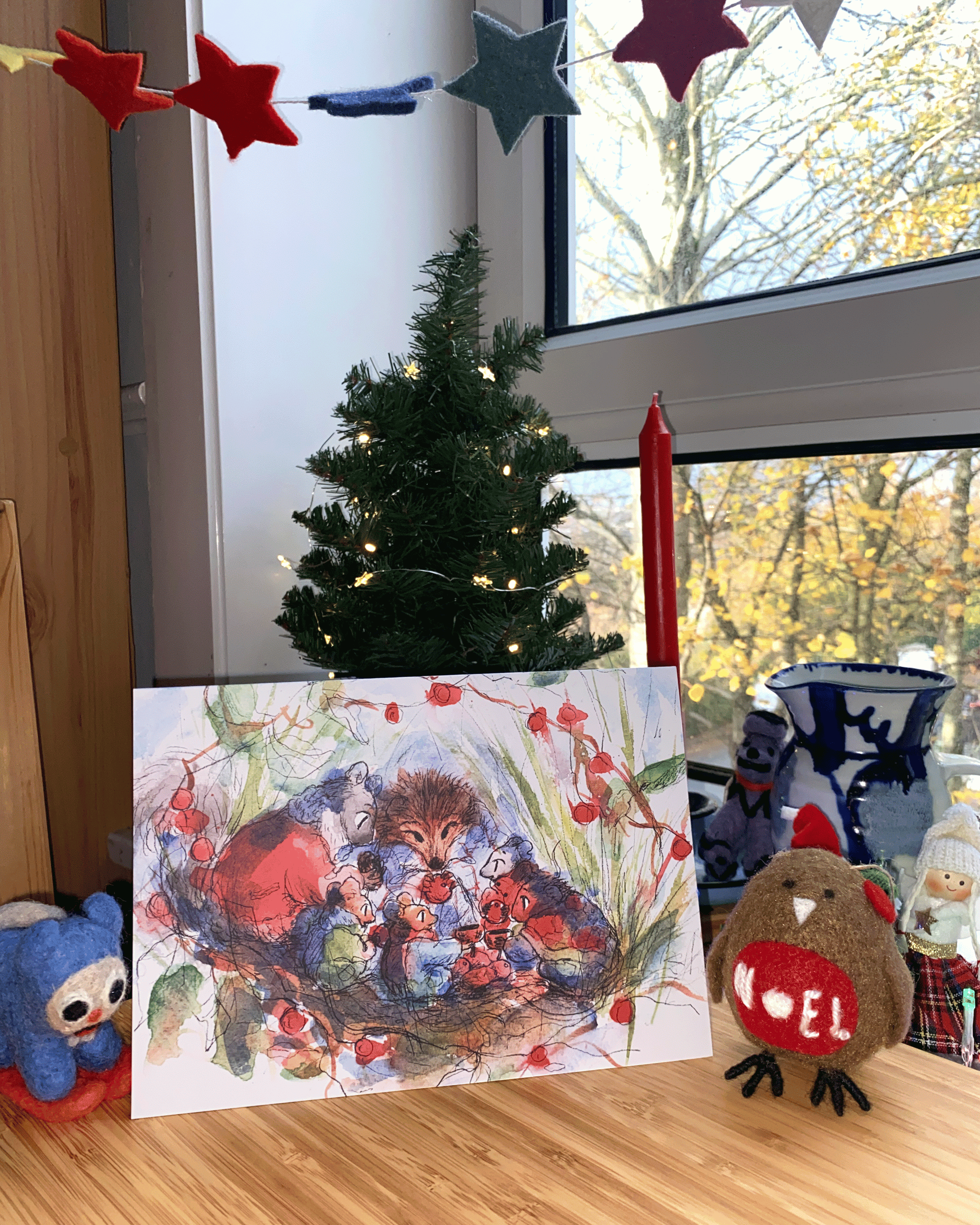 Card featuring mice, a vole, a squirrel and a hedgehog, all animals who live in the wild in Ireland.